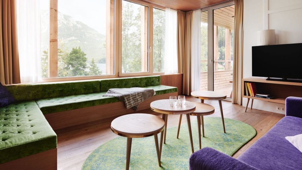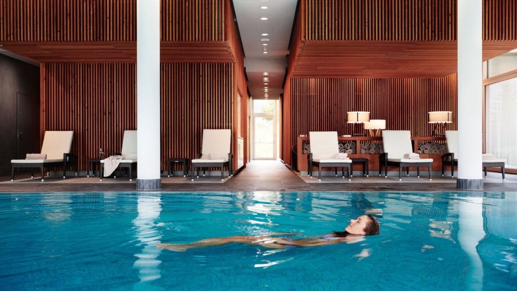 Guests are welcome to unwind in the hotel’s luxurious spa featuring a salt water indoor pool, indoor saunas, and infrared saunas and a gym. Beauty treatments are available in the cosmetics department offering magnificent panoramic views of the charming location. The hotel additionally offers a world-class golf course and numerous alternative sports activities such as boating, swimming, hiking, Nordic walking, cycling, and skiing. Upon availability, walking sticks, snowshoes, SUPs, and bicycles can be rented as well.